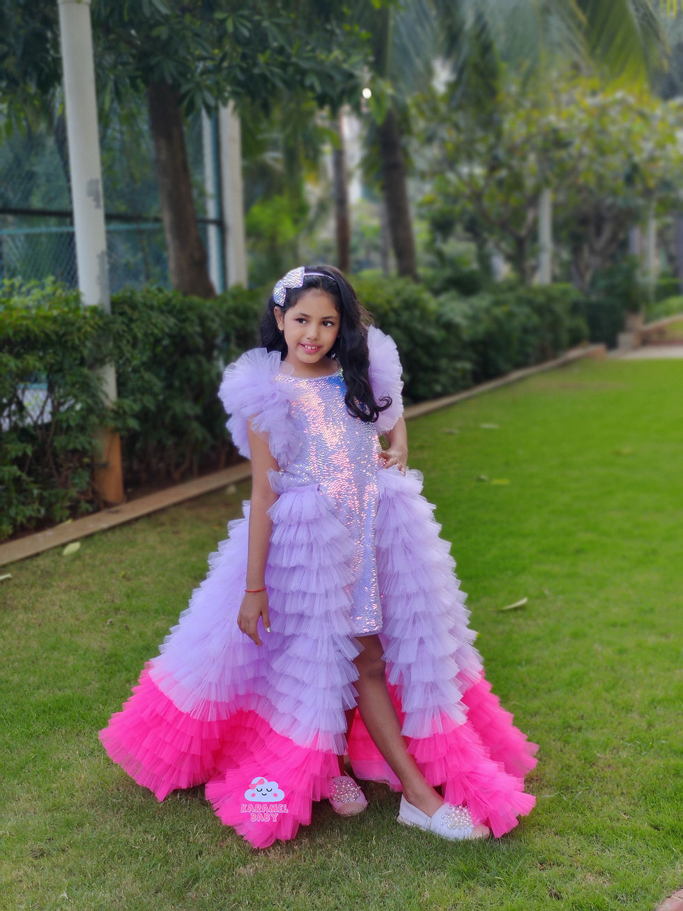 SHIMMERY PINK AND GREY DRESS WITH A DETACHABLE TRAIL
