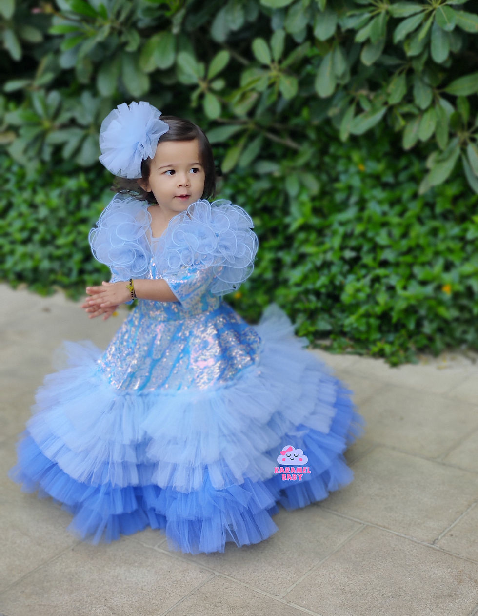 ONE SHOULDER FRILLY SLEEVED YELLOW GOWN